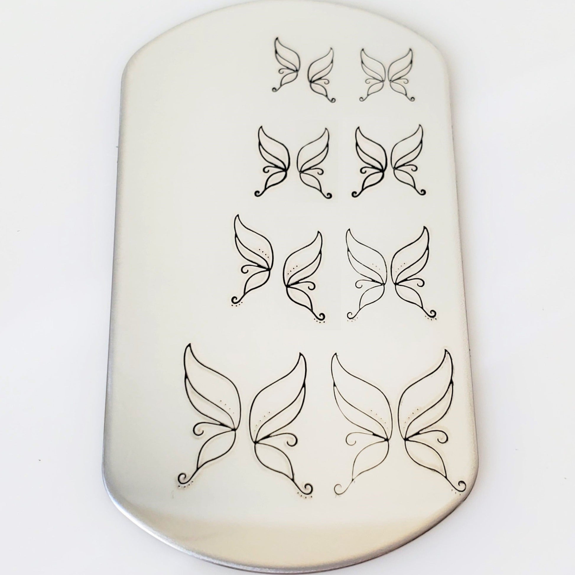 Fly away with Melissa Demke's hand stamp fairy wings! These fairy wing metal design stamps come together in one stamp, or left and right stamps.