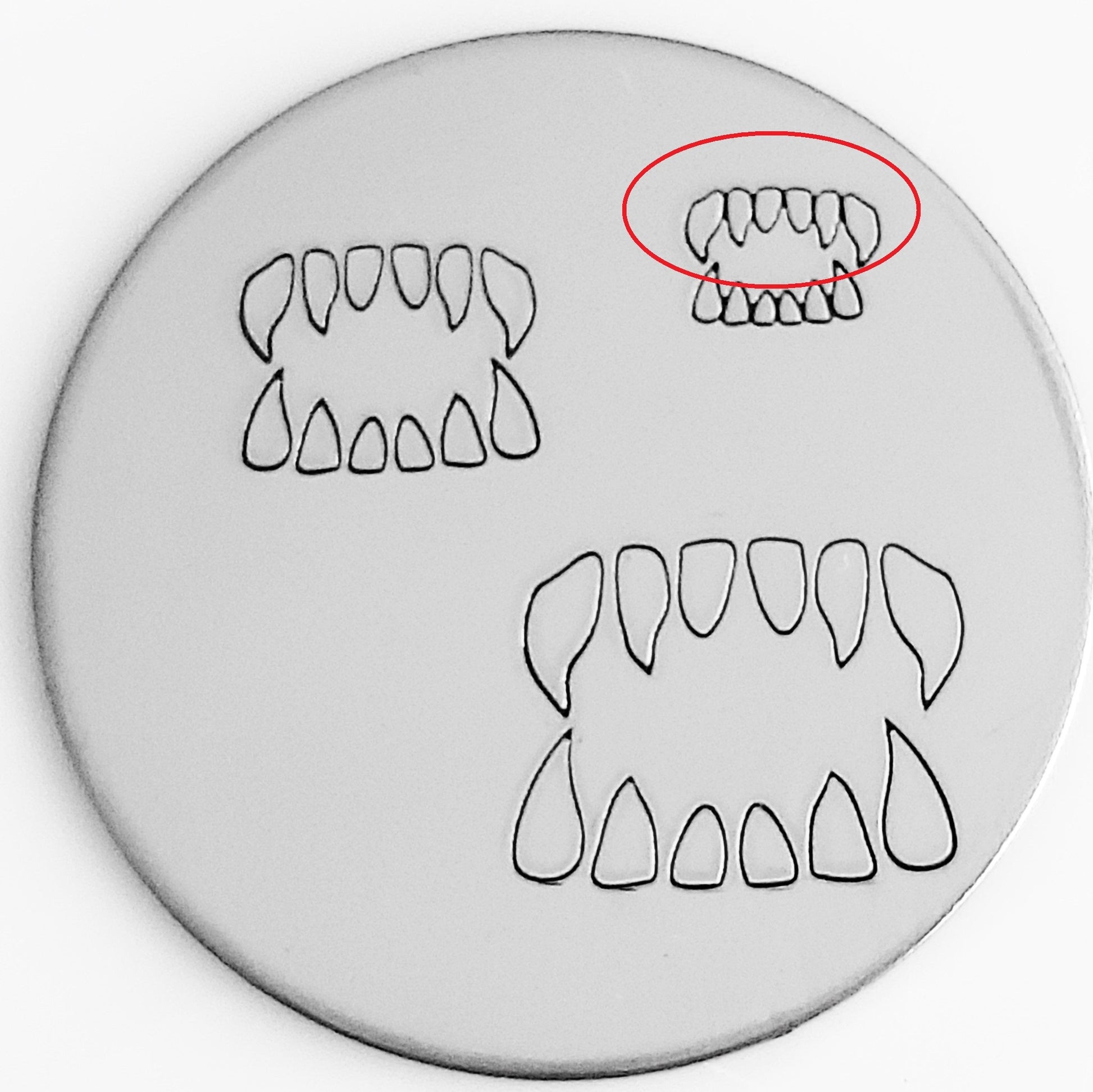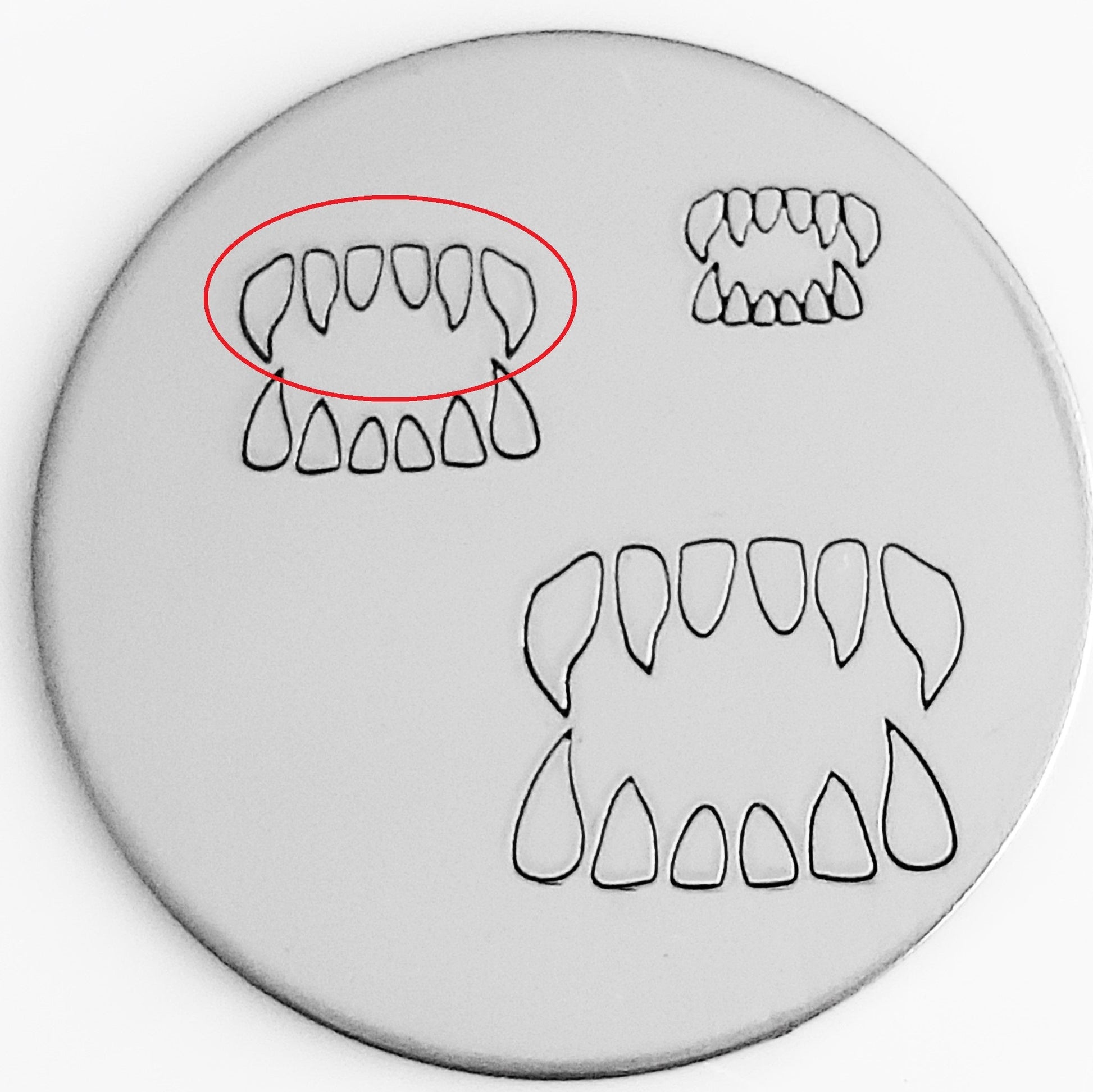 This set of TWO hand stamp fang/teeth metal design stamps comes so you can sandwich a word between the top and bottom fang halves!