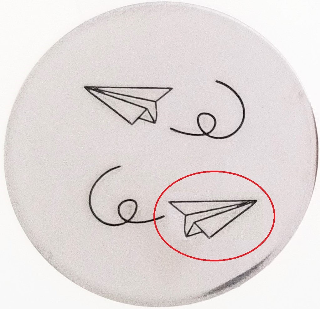 Messing around in school? Missing someone who lives far away? Send a paper airplane! Both left and right facing, with left and right facing air streams; your paper airplane metal design stamp is ready to set sail and make it as far as you can throw it.... or the blank.... whichever.