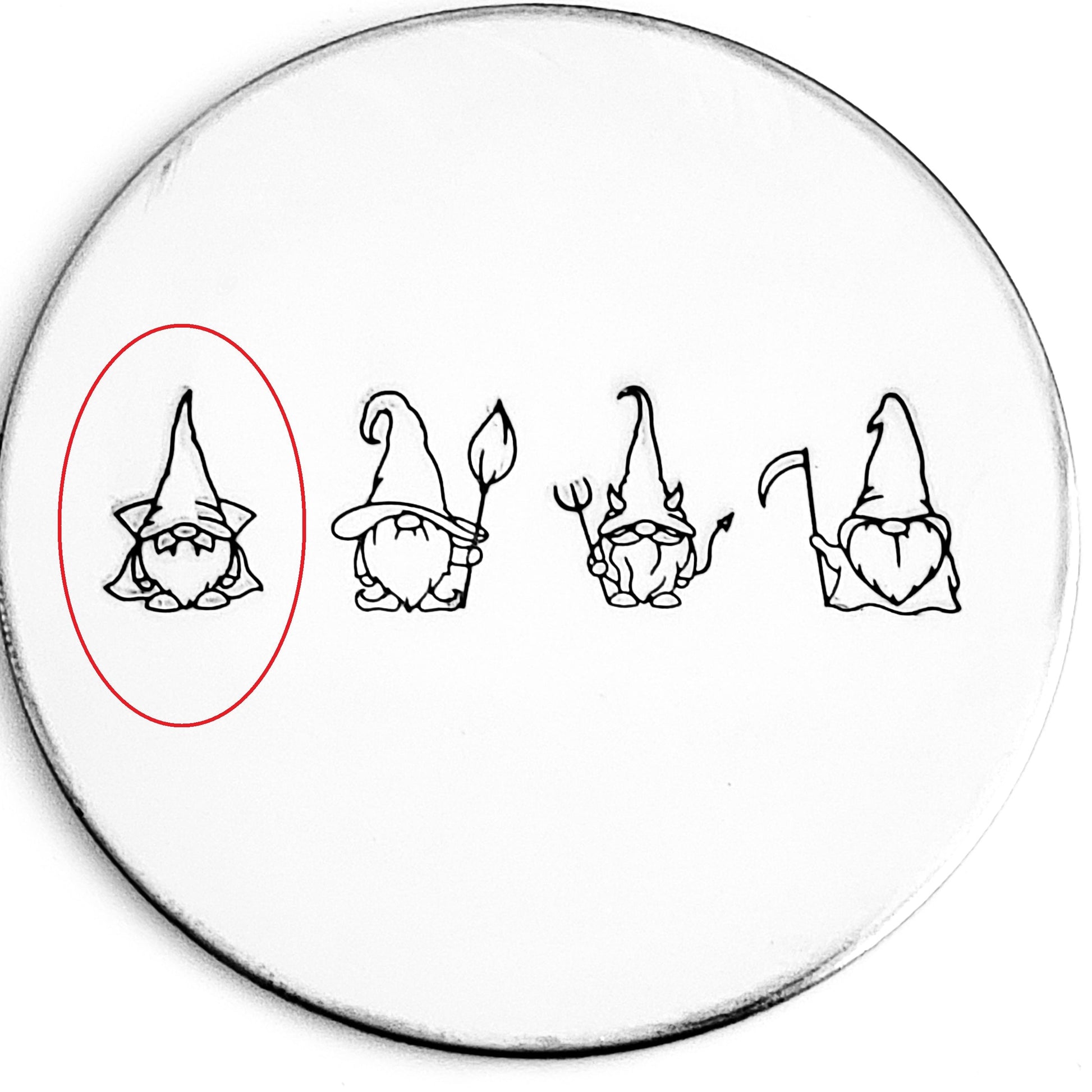 Our Halloween Gnome metal stamps may be cute, but they are each on a sinister mission! To overtake the garden to enslave all the magical creatures! Choose among the following Halloween-y Gnome hand stamps: Vampire, Witch, Devil, and Undertaker!